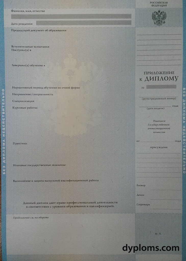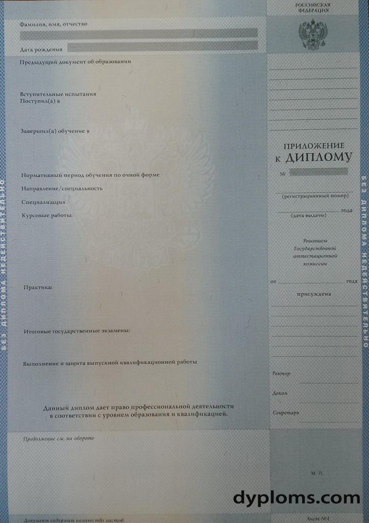 Наша компания специализируется на создании дипломов всех российских высших учебных заведений с присвоением квалификаций "бакалавр", "специалист" или "магистр". Доступно оформление документов с отличием. Принимая решение куплю диплом о высшем образовании 2004-2009 годов в нашей организации, вы получаете продукт, отвечающий следующим параметрам: